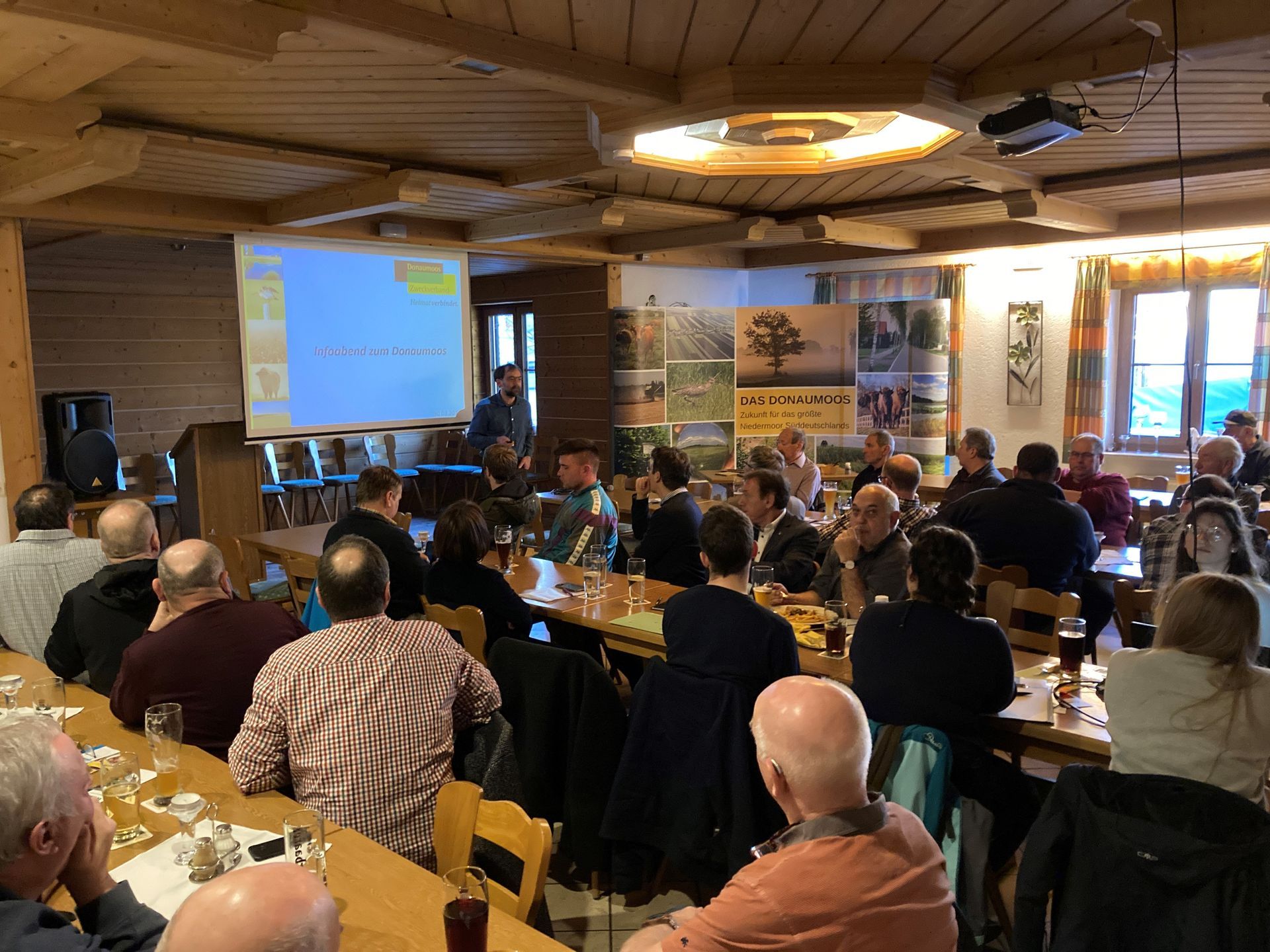 Die Entwicklung im größten Niedermoor Süddeutschlands stößt in der Gemeinde Langenmosen weiterhin auf großes Interesse. Das hat sich beim Infoabend des Donaumoos-Zweckverbands und des Donaumoos-Teams gezeigt. Rund 70 Bürgerinnen und Bürger waren gekommen, um sich zu informieren.